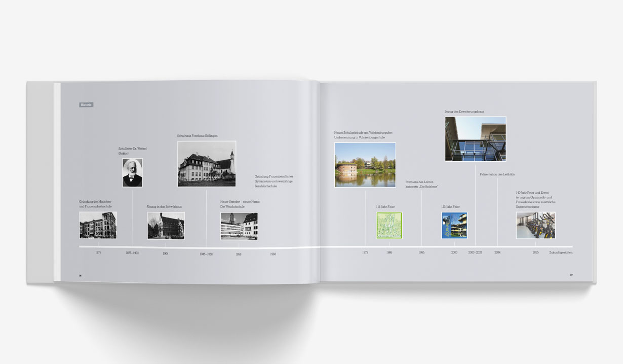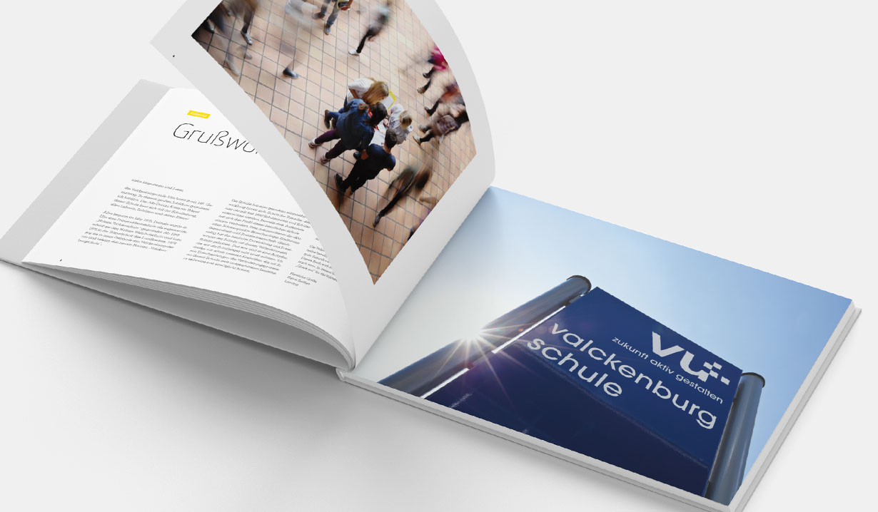 Bildband zum Jubiläum Geschichte und Gegenwart auf 84 Seiten: Die Entwicklung eines ästhetisch und inhaltlich anspruchsvollen Bildbandes gibt anlässlich der Jubiläumsfeierlichkeiten der Ulmer Valckenburgschule Rückblick, Einblick und Ausblick.